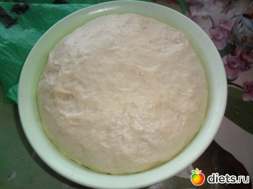 1. Дрожжи развести в теплом молоке, всыпать туда сахар и поставить в теплое место. Ждем, когда дрожжи дадут шапочку. Потом вливаем молоко в муку и отправляем туда же все остальные ингредиенты. Замешиваем мягкое тесто, накрываем полотенцем и ставим в теплое место для подъема. Когда тесто поднимется - обминаем его и ждем второго подъема: