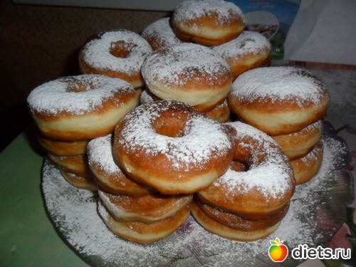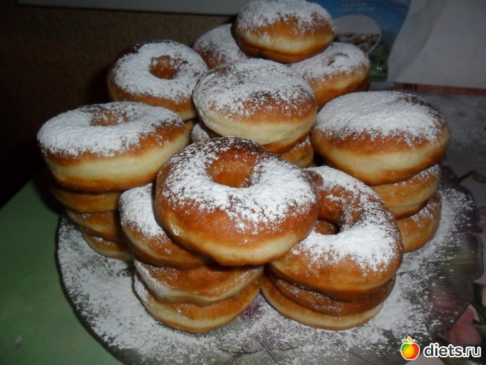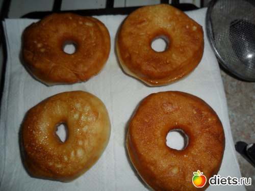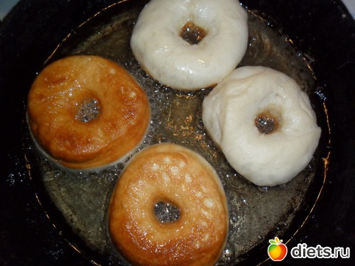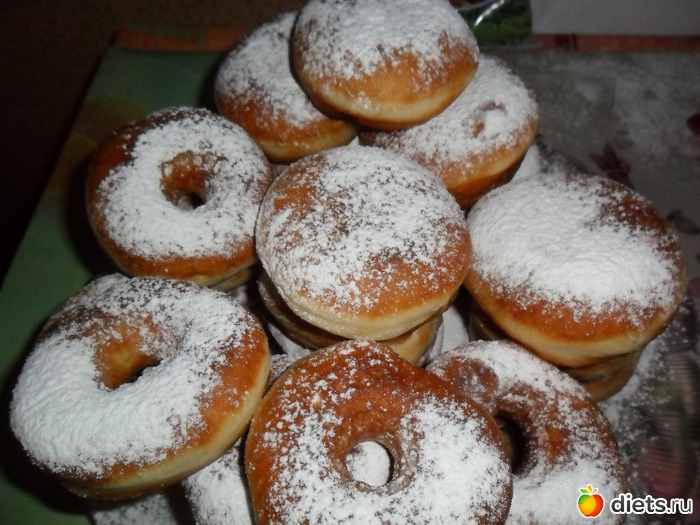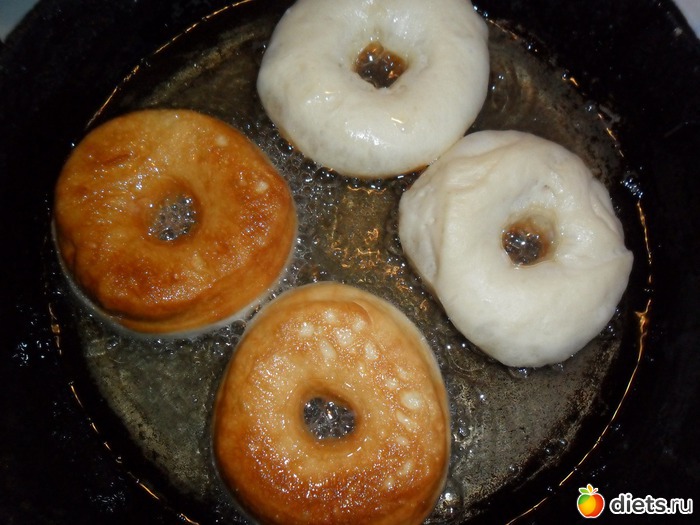 Пока мы лепили пончики с начинкой, те, что с дырочками уже расстоялись и просятся на сковородку!