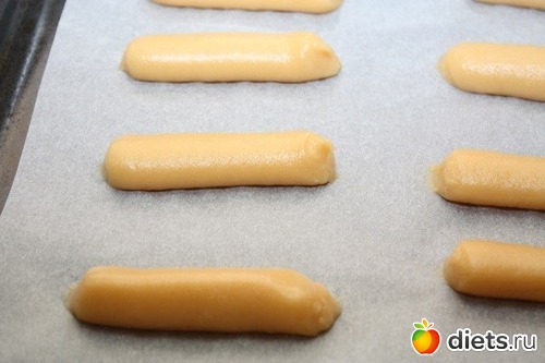 6. Выкладывайте тесто на противень, застеленный кондитерской бумагой, в виде колбасок, отделяя тесто мокрыми руками.
