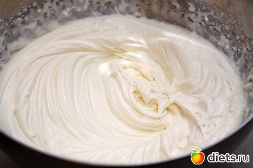 8. Для крема нужно хорошо взбить маскарпоне с сахарной пудрой и сливками.
