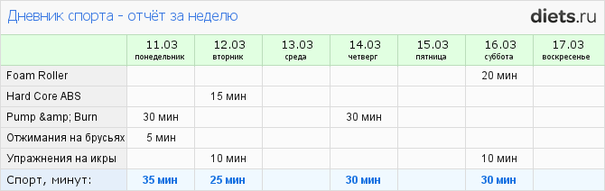 На уходящей неделе я совсем не молодец из-за ОРЗ. В четверг поняла, что заболеваю, но треньку сделала. Потом поболела еще в пятницу. А в субботу симптомов уже не было, поэтому я развлекалась с моим новым фитнес-приобретением: Про пользу Foam Roller’ов я читала в последних трех книгах о фитнесе, которые попали мне в руки. И поняла, что надо пробовать, т.к. очень нахваливали ...