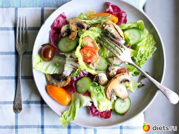 Все то же самое, что и на 4 день + обязательно свежие овощи ( я предпочитаю в виде салатов, но без майонеза ).