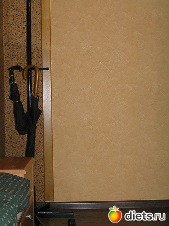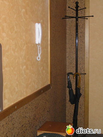 Мне кажется, в простенок между входной и комнатной дверью подошла бы настенная полка-вешалка и напольная полка для обуви, вот такого плана: