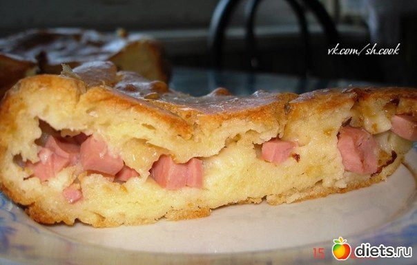 Заливной пирог с колбасой и сыром Ингредиенты: