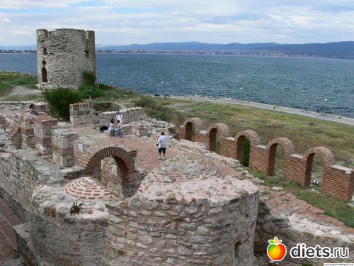 ... Старый Несебр расположился на маленьком полуострове длиной в восемьсот метров и шириной всего в триста. С побережьем он соединен узким (десяток метров) и длинным перешейком, скорее напоминающим дамбу. В непогоду его яростно атакуют волны, практически отрезая Старый Несебр от “большой земли”. Говорят, за последние три тысячи лет стараниями неустанных волн полуостров был значительно уменьшен.