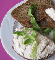 С чем это едят? Очень вкусно с любыми сухими лепешками (кукурузными, овсяными, картофельными и пр. и пр.). Можно промазать листья салата и свернуть их рулетиками. Получаются замечательно вкусные бутерброды с холодным мясом. Если сделать массу чуть жиже - это прекрасная заправка для листовых или любых овощных салатов. В общем, дело за фантазией!