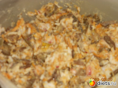 Лук режу мелкими кубиками и на сковороду, немного протушив его, тру морковь на крупной терке и добавляю луку.