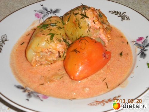 . Заливаете этим соусом перцы и ставите в духовку разогретую до 200 на 30 мин.