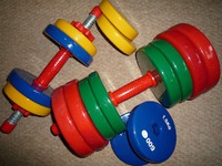 Девочки, я решила, наконец-то, заняться вплотную вводной по Косгроу, став к 8 марта счастливой обладательницей двух симпатичных гантелек по 15кг. Но оказалось, что такие габаритные штуки не очень-то удобно использовать в приседах-выпадах-тяге. Помучилась и начала ныть мужу, что мне неправильный подарок подарен и что надо бы грифом его дополнить...