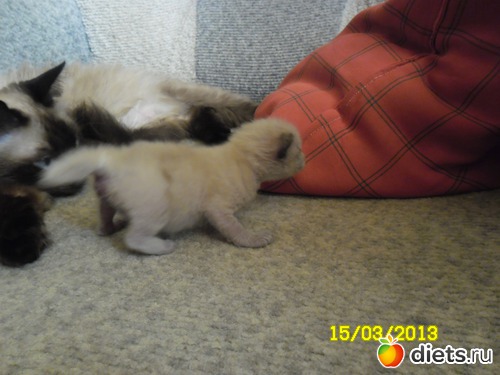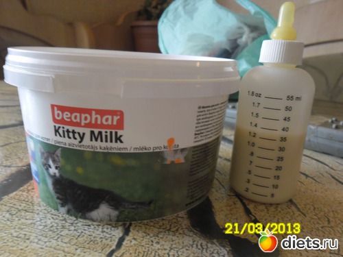 Решила написать как у меня дела. Как я уже писала у меня окотилась кошка, ей 9 лет и она сиамская, принесла двух котят, мальчики оба сиамские в мать, хотя кот был не сиамский, второй котёнок был очень слабый и я не смогла сразу понять в чём дело, а дело в том, что у кошки нет молока, вернее оно появилось позже где-то на третий день и то в очень малом количестве. когда я это поняла то было уже поздно, один котёночек умер, когда придя после работы я увидела, что второй котёнок слабеет, я пощупав кошку поняла и рванула с утра в вет. магазин и купила молочную смесь для котят и маленькую бутылочку: