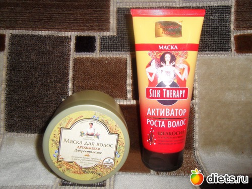 Маски для волос: Рецепты бабушки Агафьи «Маска дрожжевая для роста волос» и масочка «Активатор роста волос». Покупаю для роста волос, так как волосы медленно очень растут и жидкие. Вот второй маской пользуюсь уже месяц, волосы стали значительно гуще, даже муж заметил.