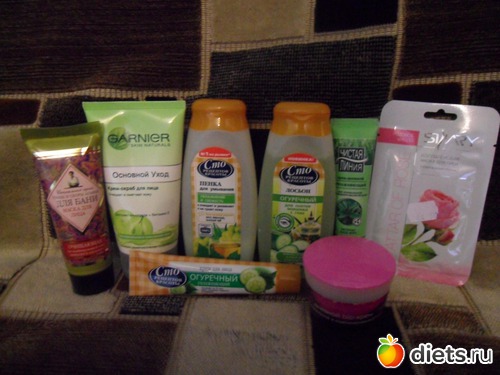 Маска для лица «Рецепты бабушки Агафьи», скраб для лица «Гарньер», пенка для умывания, лосьон, крем увлажняющий «Сто рецептов красоты» (только средства данной серии подходят более менее для моей аллергенной кожи лица), крем увлажняющий «Чистая линия», крем дневной «Черный жемчуг», маска для лица коллагеновая.