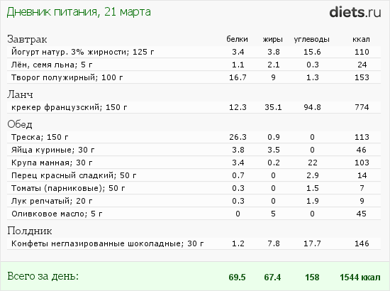 и понятно, что сегодня будет перебор, зато я серьезно задумалась о своих перекусах и наличием вредных продуктов под руками. Буду работать в этом направлении.