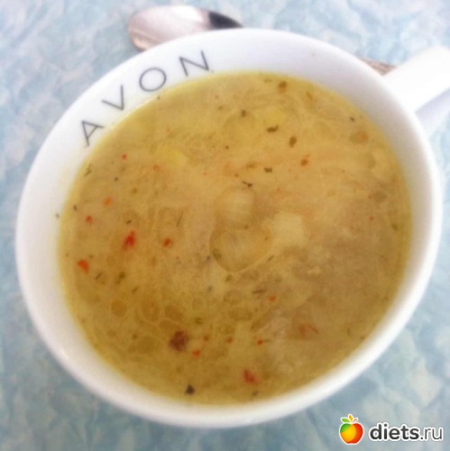 Днем я ела приготовленный вчера куриный супчик, с луком и приправой "Магги курица".