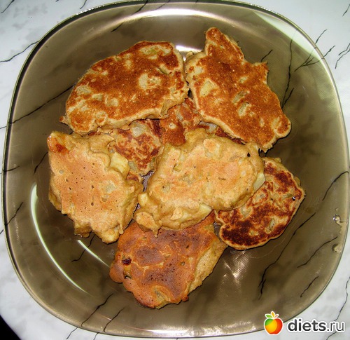 Яблоко очистить от кожуры, удалить сердцевинку, нарезать на мелкие кусочки. Добавить яблоко в тесто, - перемешать.