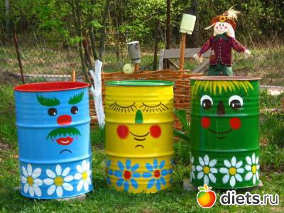 Моей фантазии пока хватает на покрышки. Их можно расположить в любом месте сада и выращиваю в них я петкньи и настурции. Покрышек, получается не видно, а такая полушаровидная клумба. Обрезки самой покрышки никак не делаю, так лучше сохраняется влага, т.к. дача только по выходным. Высаживаю в каждую легковую 3 шт, в нрузовую 5 шт. цветов.