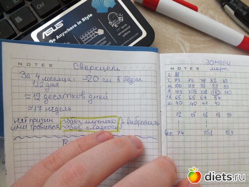 Как я уже говорила, в течение недели мы будем отмечать ежедневный калораж и результаты в специальном блокнотике.