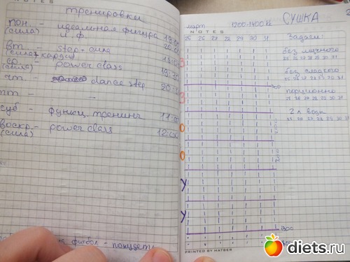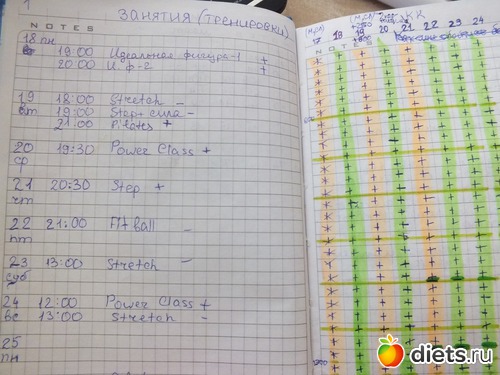 Только что составила расписание тренировок на следующую неделю и разлиновала новую таблицу калоража.