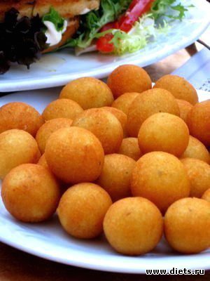 Шарики можно просто обвалять в муке или в сухарях без смачивания в яйце - это по вкусу.