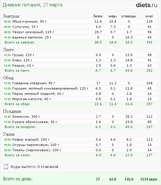 ужин - 200 гр кефира+ 100т гр помидора, 100 гр огурец свежий всё без соли и масла..