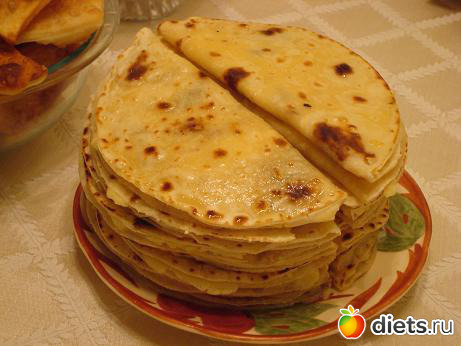 замесить тесто, после разрезать его на куски примерно по 70гр, раскатать на тонкие(как на пельмени) лепешки(что бы получились ровные я вырезаю их по тарелеке)и выпекать на раскаленной сковороде без масла с двух сторон, смазать сливочным маслом(также с двух сторон) и на одну половину уложить картофельную начинку, согнуть лепешку пополам, прикрыв начинку второй половиной.