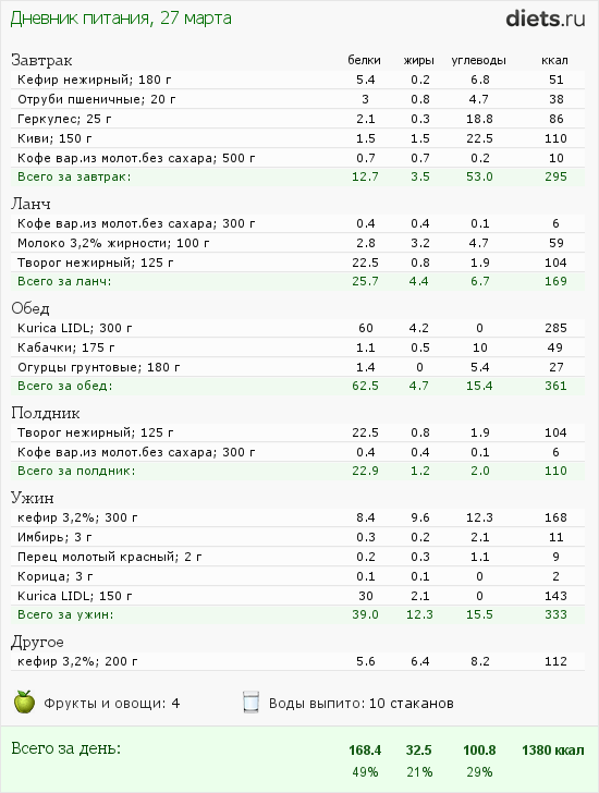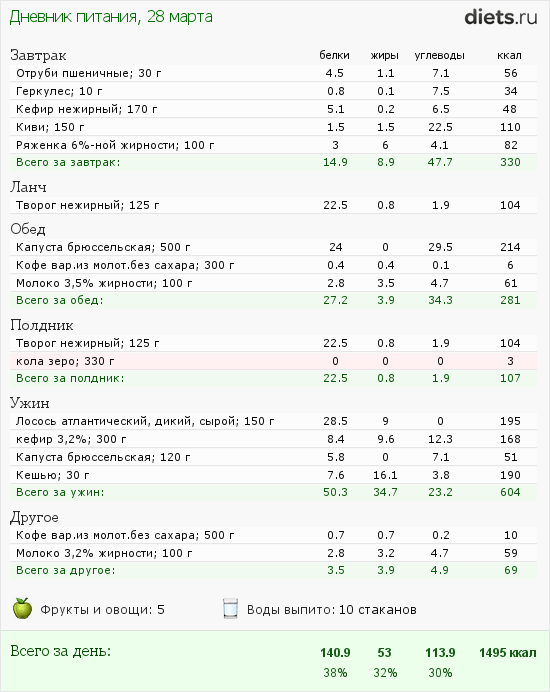 Белков конечно получилось многовато + они почти все животные это плохо, завтра буду исправляться на обед готовлю Брюсельскую капусту на пару, знаю что она содержит много белка + есть у меня грибочки но они жареные не знаю стоит или не стоит, может чуть чуть разбит на 2 дня???