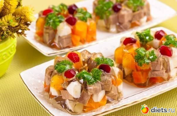 Заливное можно приготовить как в одной большой форме, так и в порционных формах.
