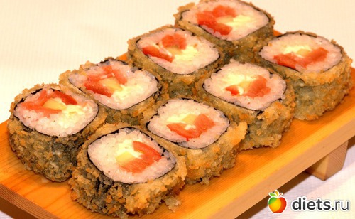 Особенно в темпуре вот эти - горячий ролл с копченным лососем, сливочным сыром и помидором... ммм... мечта!!!