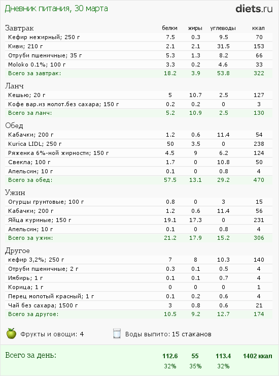 Если ты возьмешь углеводов в районе 100г, то это будет еще 400ккал, итого 1300-1400ккал в день.