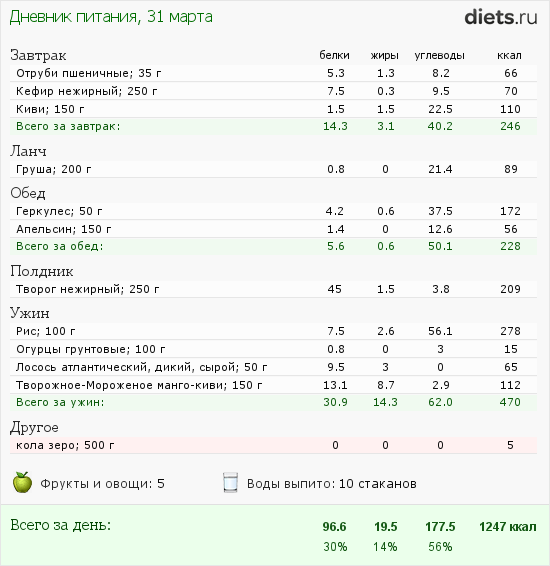 Вот вроде все полезное сегодня ела и в основном старалась белок употреблять, даже ненавистные яйца откушала и все равно какой то % странный вышем, ну всего поровну
