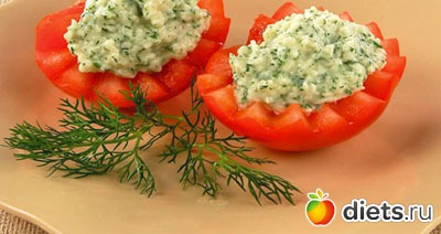 Помидоры разрезать пополам. Измельченную брынзу смешать с майонезом, толченым чесноком и 1\2 нормы мелко рубленной зелени... Читать полностью