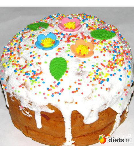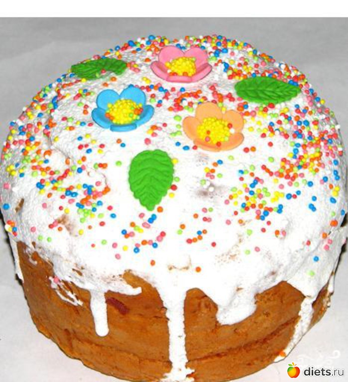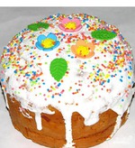6. Взбить глазурь из сахарной пудры и белка. Еще горячие пасхи вытянуть из форм, смазать глазурью и отправить в печку еще на 3-5 минут. Готово!