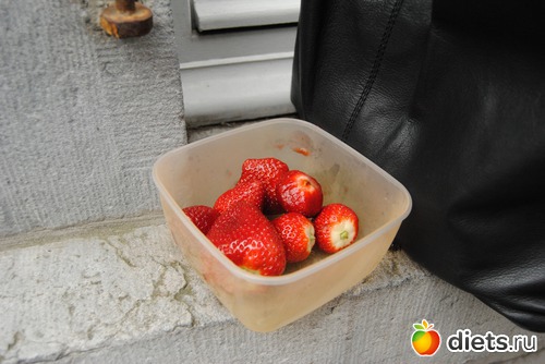Мои там решили перекусить и дочка кушала вафлю с шоколадом, а муж сосиску в булке ))) А я молодец устояла, достала свою клубнику и съела ее )))