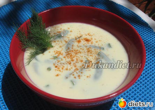 Сварить куриное филе, порезанное соломкой (20 минут). Добавить отруби и через 10 минут зелёную фасоль, мелко нарезанный чеснок, лавровый лист, базилик и соль. Варить суп ещё 5 минут, выключить огонь и дать постоять 10 минут. Перед подачей на стол добавить: крупно нарезанные яйца, йогурт и укроп. Приятного аппетита!