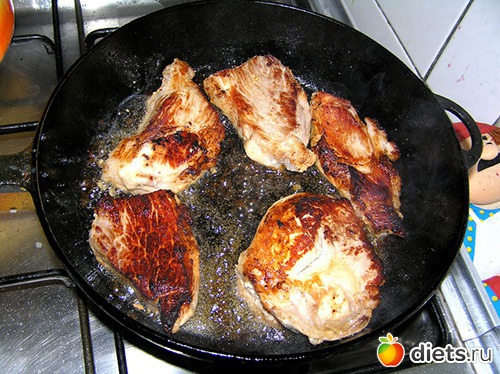 • 500-700 г нежирной свинины, вымытой, хорошо обсушенной салфеткой и нарезанной поперек волокон ломтями толщиной 2-2,5 см