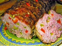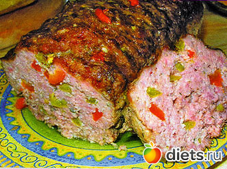 Перцы вымыть, очистить от семян и нарезать некрупными кубиками. Лук очистить и мелко нарезать. В миску выложить фарш, посолить и перчить по вкусу. Добавить укроп, яйца, сливки, нарезанный лук, манку и хорошо вымешать. В фарш замешать нарезанный сладкий перец. Выложить массу в прямоугольную форму. Поставить в предварительно разогретую духовку и запекать при температуре 200 °С в течение 50 мин (или до готовности).