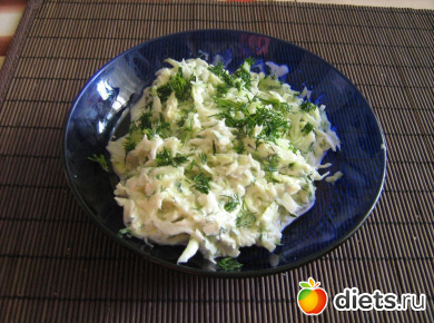 Diets.ru Салат из свежей капусты с огурцом, чесноком и сметаной
