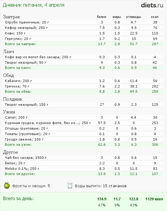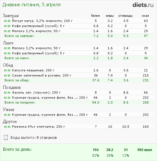 Теперь по питанию, так выглядеть мое меню на сегодня :