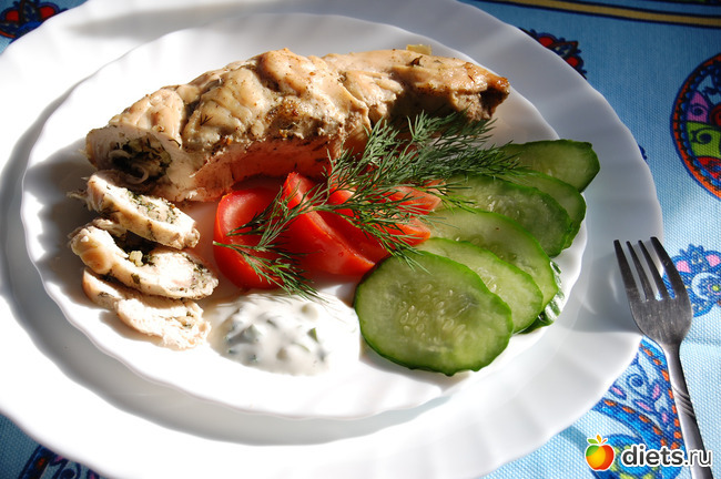 Diets.ru Рулет из куриной грудки с зеленью и чесноком