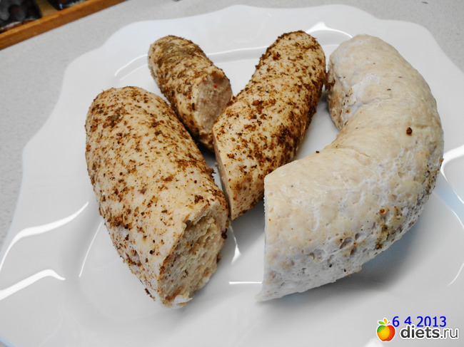 А лимонный сок и сахар-это просто по технологии так...в любой колбасный фарш добавляется кислота лимонная, но я ее заменила соком лимона. Иначе будет у вас колбаса безвкусная!