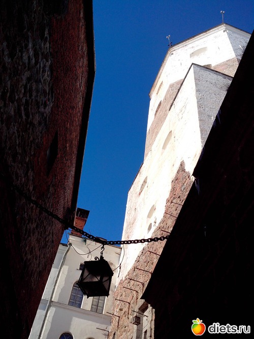 На входе нас встретила потрясающая собака! Она сидит, и встречает всех гостей, и провожает до входа в башню.