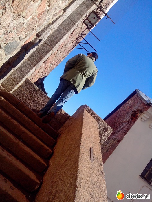 Подниматься очень страшно, поджилки трясутся, когда смотришь вниз, но я вообще боюсь высоты, вот мне и неуютно. Муж шел впереди.