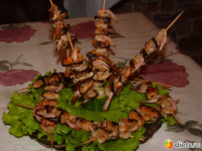 А если креветки замариновать в соевом соусе без сахара ( при необходимости можно добавить и сах.зам.) и соединить с вермишелью из конньяку - вкусняшка, пальчики оближешь.