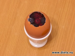 Скорлупу поставить в подставку или контейнер из-под яиц, для того, чтобы удобнее было выкладывать начинку.
