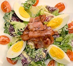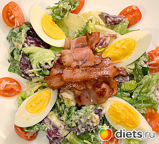 Ключевые слова: бекон, яйца, салат, пармезан, горчица, помидоры черри