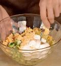 Смешать овощи, желтки и укроп с майонезом, добавить тыквенные семечки, приправить солью и перцем.