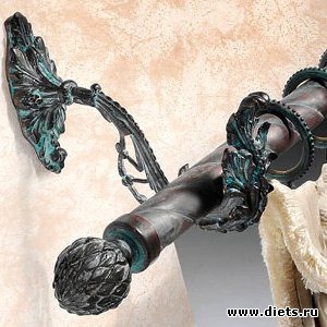 Не меньшего внимания заслуживают и кованые карнизы, которые могут изготавливаться под заказ по индивидуальному дизайну. Такие карнизы придают комнате особый шик. Бывают кованые карнизы одинарными, а также двойными или тройными, с трубами или струнами и трубами. Главный декоративный элемент в таких карнизах – кованые наконечники.