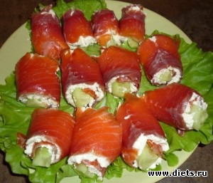 Diets.ru Рулетики из форели с огурцами и сливочным сыром