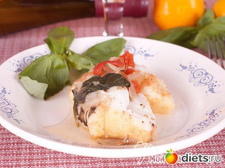 Филе макруруса посолить, поперчить и выложить в сковороду на апельсиновый соус, сбрызнуть оливковым маслом. На каждый кусочек рыбы положить по одному листику базилика. Закрыть крышкой и тушить на медленном огне 15-20 минут. Подавать можно с любым гарниром - отварным картофелем или пюре, отварным рисом и тд.
