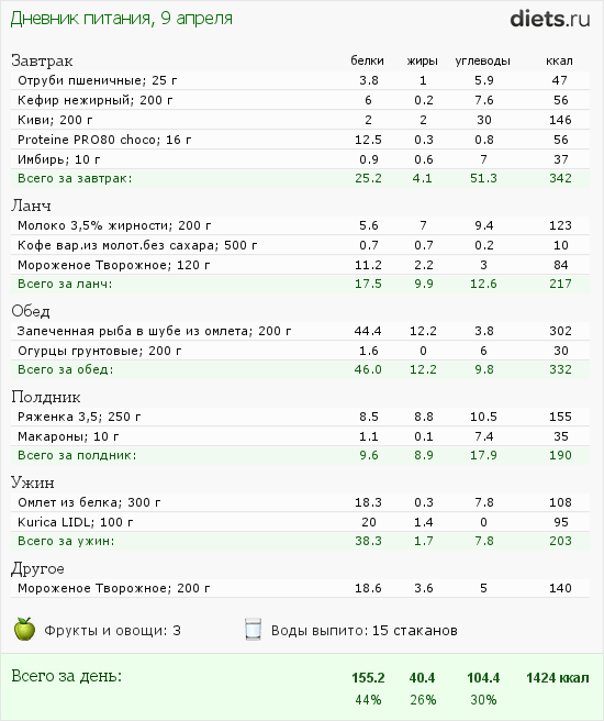 Сейчас тебе покажу там все так же как и у меня в Буче только в белковые, углевоби надо умножать на 0.5